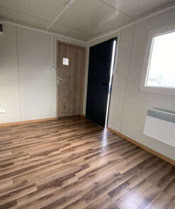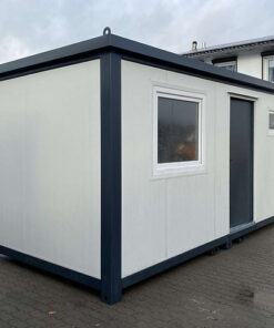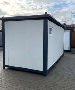 Contenedor de oficina sanitario de 5 x 2,40 m (Orinario, WC, Lavabo de ducha). La estrella de nuestros contenedores de oficina. Puede ser habitable y utilizado para cualquier otra necesidad privada o profesional de su elección. Como puedes ver en la fotografía, tienes la presencia de una ventana fija integral. Esto te permite tener más luz, puedes ver más el exterior, por lo que tendrás menos sensación de estar en un contenedor. También se puede utilizar temporalmente gracias a su carácter removible.