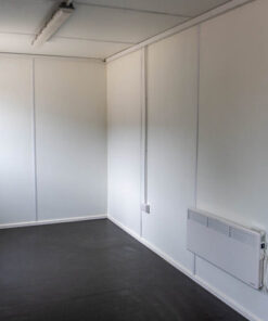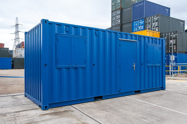 Container de oficina de 20′ con dos ventanales para brindarte un ambiente luminoso. Las puertas y ventanas se instalan hacia el exterior. Esto te deja con una habitación práctica y espaciosa ideal para oficina y para cualquier otro uso de tu elección; hogar, viajes y estancia, negocio móvil, marco comercial, emisión de billetes y más…