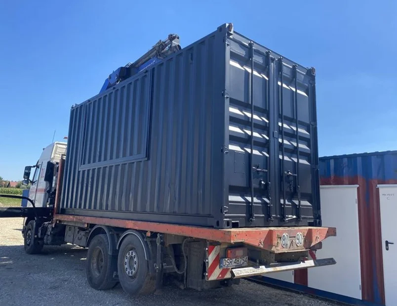 Una ventana está ubicada en la pared larga del contenedor, lo que proporciona una excelente visibilidad e iluminación natural en el interior.