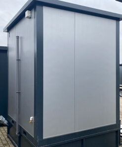 • Configuración: Cabina doble de 2 x 2 metros con opción de equiparla con inodoro con cisterna o ducha, según sus necesidades. Uso: Simplemente conéctela para uso inmediato, lista para usar.